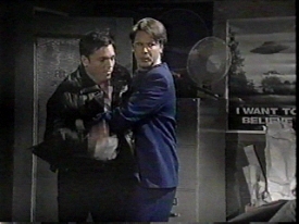 Nick makes an appearance in the first skit, which has Mulder trying to get Janet Reno to stop hitting on him. She finally gets tired of him, and calls in her other man, Krycek