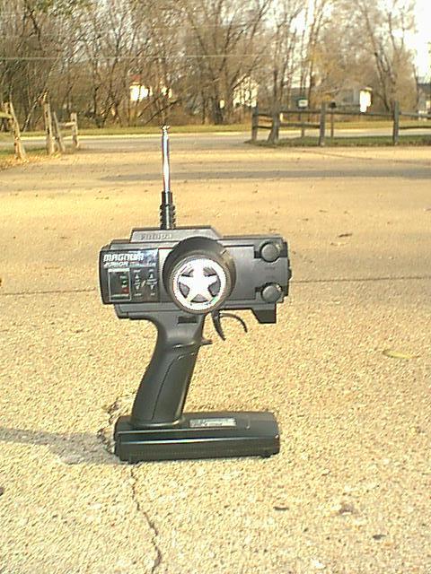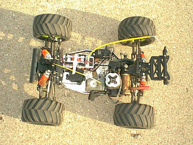 adjustable shocks, .12 pull start engine. It is 2-wheel drive car with a Futaba