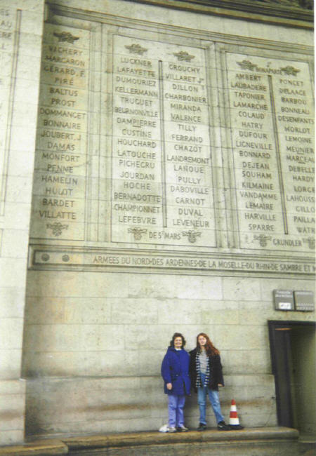 Some background on this picture... This is L'Arc de Triomphe... the third name in the third row is DILLON, my mom's (and my Aunt Anne's, who is seen here with me) maiden name!