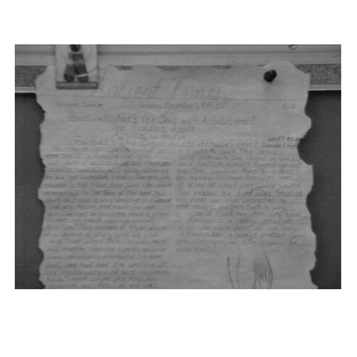 Following are pictures of student work from a variety of projects. This picture is from a project on The Iliad completed by freshmen in our World Studies class. The project included creating a newspaper that discusses the events of The Iliad as if they were current events. This group took the time to create an ancient, parchment style newspaper.