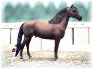 | Polono is a champion Arabian gelding I created using the Family Arabian Mare mold. I built the face in to create a masculine appearance then added, ahem, proper gender features. | Cavallina is her own color. When I discussed her color with her owner, we had a difficult time deciding exactly what color she was! However, she's a beautiful horse, and her model turned out to look exactly like her. | ||