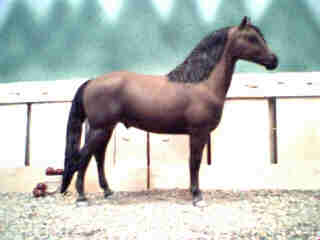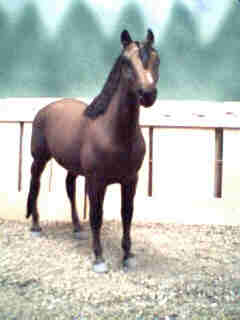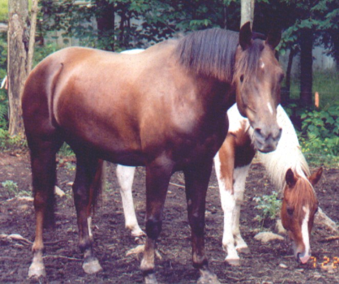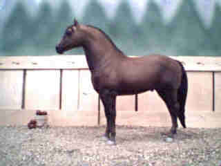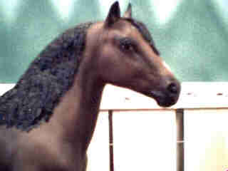 This gorgeous bay gelding has the most unique legs--they're almost "brindle," and were they ever a challenge! Unfortunately, you can't see the fruits of my labor on his legs in those tiny, blurry digital pics!