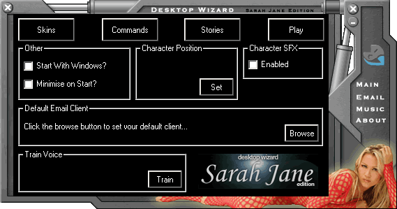 SARAH JANE'S VIVACIOUS PERSONALITY HAS ALSO BEEN CAPTURED AS AN ANIMATED CHARACTER, WHICH CAN BE USED TO SPICE UP THE DESKTOP ON YOUR PERSONAL COMPUTER. NOT ONLY CAN YOU SEE AN IMAGE OF SARAH JANE BUT YOU CAN TALK TO HER AND GIVE HER COMMANDS FOR OPERATING YOUR COMPUTER. AND SHE TALKS BACK!