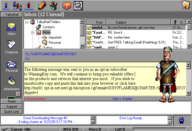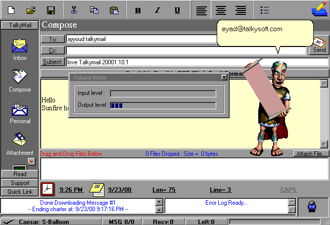 OK are you ready to download TalkyMail and see for yourself how much fun this program can make sending and recieving Email can be. Just click on the download link below and download your trial copy NOW!!!!