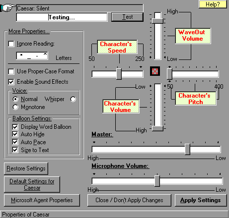Listening to your favorite music (*.mp3 or any other music format) and let the Wave Meter monitor the music frequency. Works for Microphone and Character Speaking too.Note the purple line in output as the Agent is speaking *S*