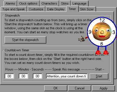 also this setting will let you change the skin of the clock to whatever you want it to look like... one of the newest setting of this clock is the stopwatch setting shown here And as you can see Im using 2 agents Uksoftwares own Clocky and Phoney quite a pair....but with this setting you can choose to use one or two agents and you can make it use whatever agents you have downloaded on your Pc..