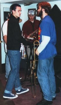 The boys stand nearby as Ray mixes the cd.