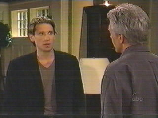 This was not a touching reunion of Todd and Sam, who he looks at as a surrogate father. When we last saw Sam and Todd saying goodbye at the airport, Sam, was much softer with Todd, not exactly forgiving everything he did, but certainly there was much more emotion in their goodbye. I should not be surprised the writers either choose to ignore it or changed their minds, but Sam came off ice cold with Todd. And Todd of course expected that Sam would be there to help him out of a legal mess that he may incur due to his attempts on RJ. What I did enjoy in this scene was when Sam grabbed him angrily after Todd’s remark about Nora, Todd’s reaction. You immediately saw the scared little boy that was roughed up by his father and Sam immediately saw it also and backed off. Sam is outside his front door waving goodbye to the nanny and Matthew, he enters back in his house and stops short when he sees Todd sitting in the living room on the couch reading a document casually. Todd glances up at him and goes back to reading.
