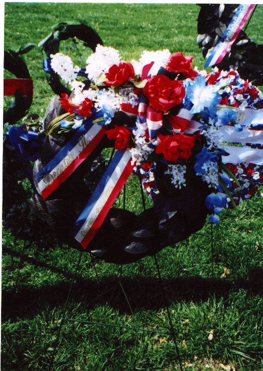 The first picture is the wreath that the Decatur Civil War Round Table presented at the Annual Lincoln Death Day Ceremony on April 14, 2001, at the Lincoln Tomb, Springfield, Il. The second is a picture of presenters of wreaths from various organizations. Each group was called one by one,presented his/her wreath, and stood on the steps of the Lincoln Tomb. Groups from varying states were present.