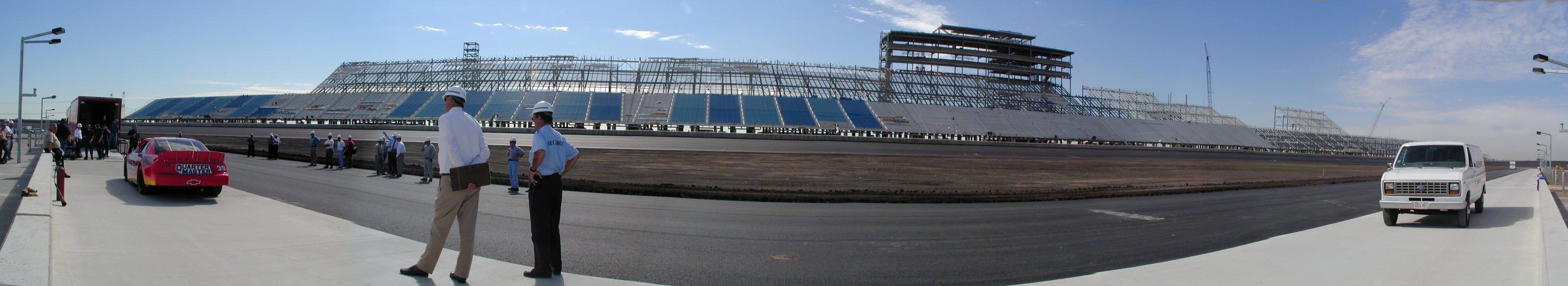 1/2 MILE OF PIT ROAD , GRANDSTANDS, AND TRACK AT THE CHICAGOLAND SPEEDWAY