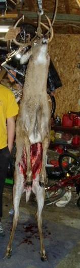 Recently my dad has gotten really into hunting. Midlife crisis? Stress relief? Who knows. I think its pretty freaking cool. Anyways, he has been plauged with bad shots, no deer, crazy neighbors, and even gun malfunctions for the past few seasons. Finnally this year he decided not to be a tight wad and purchase a Red Dot laser scope for his shotgun. He and I went down to get up in the treestand sunday morning. No Deer. 4 hours later we go up for something to drink and a nice break and decided we would see if any would stop by the stand near the late afternoon. Sure enough around 4:20 (lol) a nine point buck strutted into our view. 2 shots later I was knee deep in deer guts. To make a long story short...here are pictures.