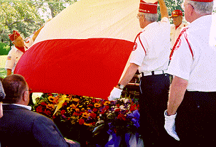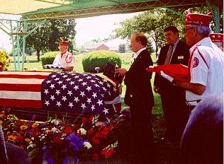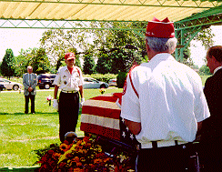 The Military Funeral Honors Ceremony consists of a Firing Party of at least 3 Members, the playing of Taps and the folding and presentation of the US Flag to the next of kin.