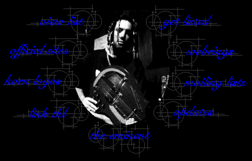 Here at the korn list, We do only one thing, but we do the best damn job at our one thing. Here, It's links, hundreds of korn links. We are the largest collection of korn links on the web. 266 links at the moment. Please maximize this page for proper viewing. Also, if your screen setting isn't at 800 X 600, you're not viewing this site properly site.