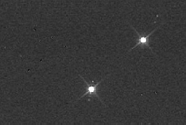 Neptune and it's big moon Triton, they look like a double star at the 2 billion mile distance that they are.