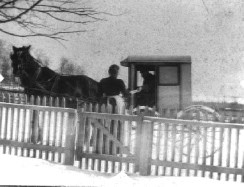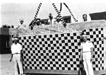 A float in the 1928 street fair. Ora Smith & Hillard Porter standing.