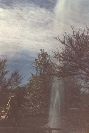 Rex did it with the backhoe. -- Higher than the electric wires.