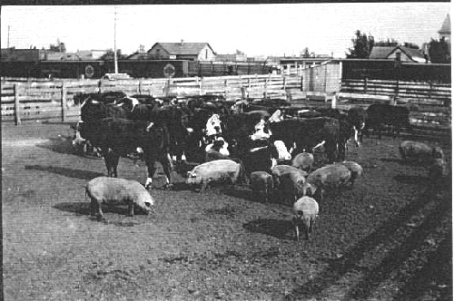 And a picture of Hyer's Groceries, Meats and Dry Goods. Is the "Mock's building along side the post office I assume, except the post office isn't there yet.