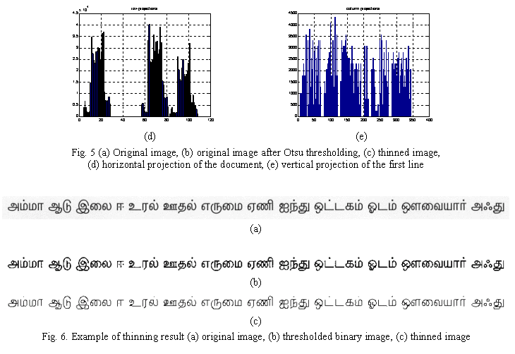 In our approach, we assumed a fixed size (12 pt.) Tamil printed character from the InaimathiTSC family with no skew. So, the preprocessing stages included noise cleaning. binarization, skeletonization and feature extraction. Figure 2 shows the flow of our approach.