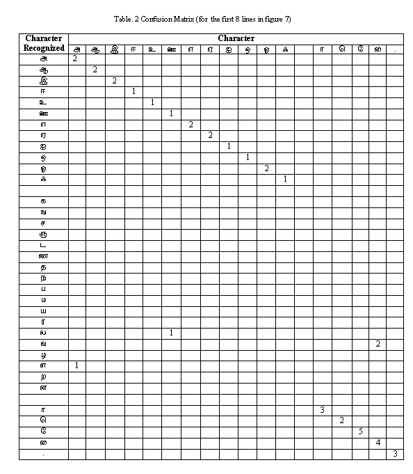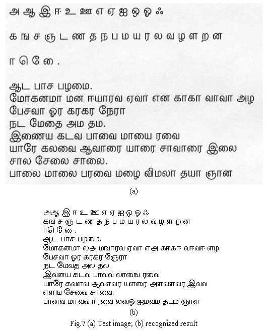 Once we recognize a character, the result can be written to a text file with its corresponding character code. Here, we used the standards proposed by the TSCII group [4] and hence the output was easily readable in Tamil using a text-editor.