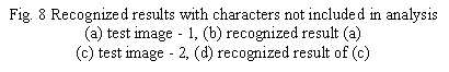 Driven by curiosity, we also tested our application with characters that are not in our database. Not surprisingly, there characters in our database were identified with sufficient accuracy. Figure 8 shows our test inputs and their corresponding recognized outputs. (Note that characters with a 'dot' above were not included in our database.)