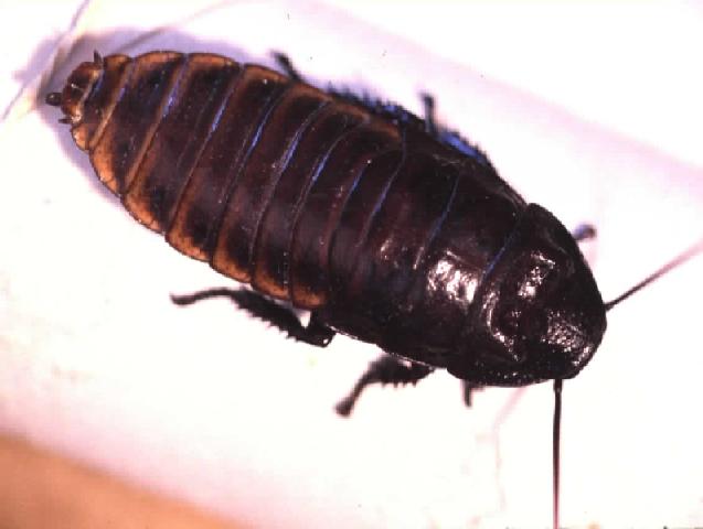 There are two possible enclosures you can keep them in. One is an aquarium with either a screened top or Vaseline around the top inside. With the Vaseline, you don't need a top, although I recommend one for your sanity! With the screen, you may have to brush some cockroaches off the underside of the screen every time you open it. The other enclosure is a sealed shut shoebox with holes punched in the top, but this will not work well for observation. They like the daytime temperature to be around 88-96 degrees (Fahrenheit), and no lower than 68 degrees at night. A convenient heating method is to keep their enclosure on or next to a cable TV box or other non-moving electrical appliance. Although, they will live in cooler climates, they tend to be less active, grow more slowly, and need more food. They eat crushed dog, mouse, or chick food, supplemented with fresh fruits and vegetables. A damp sponge will provide them with the water they need. Cage cleaning is as simple as removing all cage objects and roaches, then shaking out spoiled food and their dried feces. Cage cleaning should be done about every month, and food should be changed about every other day.
