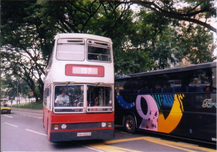over 15 000 Atlanteans had been built. In February 1972, Leyland announced the Atlantean AN68 series. AN stood for Atlantean while 68 referred to the Leyland 680 engine which was standard issue. The AN68 were available in 2 lengths; 9.4m (indicated by the no. 1) and 10.2m (indicated by the no. 2). They were also available in right-hand or left-hand drive, as indicated by the initials R and L respectively. The chassis design was simple and the engine was placed in a rear-vertical position. Drive was taken in a straight line through a Leyland Pneumocyclic gearbox. The cooling system consisted of a rear mounted radiator with a large co-axial fan. The fan was driven by the engine providing excellent internal cooling and strong continuous external air flow across the engine. Suspension was in the form of semi-elliptical leaf springs with shock absorbers for the front axle. The overseas version of the AN68 came equipped with power steering. Although Singapore's first double-decker bus, an AEC Regent, appeared in 1958, it was not until 1977 that double-decker buses made an impact on Singapore's transport system. 20 Leyland Atlantean AN68/2R buses were launched on June 13, 1977. They were put on route 86, a semi-express service between Tampines Way - Shenton Way. The buses come with 2 type of bodyworks. 12 buses had a Metal Sections body while the rest had an angular body with shallow roof from British Aluminium Co. (BACo) The launch was a success. Singapore Bus Service (SBS) placed an order for 200 Atlantean chassis in 1978. When the chassis were completed, they were shipped to Singapore to be fitted with a body kit at SBS's Woodlands Assembly Line. Again, 2 types of bodies were fitted. 100 buses had Duple Metsec body and the other 100 had Alexander-L type body. All the buses were deployed in 1980. Yet another shipment of 100 Atlanteans arrived. All the buses were fitted with Alexander-L type body and launched in 1982. By now, SBS's double-decker fleet had reached 320 units. SBS placed an order for another 200 Atlanteans. Leyland was obliged to complete the order despite the dwindling British double-decker bus market in the early 1980s. And so, these buses went down in history as the last Leyland Atlanteans to be built. All the buses received a new Alexander R-type body and were registered between 1984-1986. A new ruling by Singapore's Land Transport Authority states that public buses must not be more than 12 years old. The older Atlanteans were withdrawn completely by the end of 1993. Only the Alexander R-type bodied Atlanteans remained until their own complete dismissal at the end of 1999. |