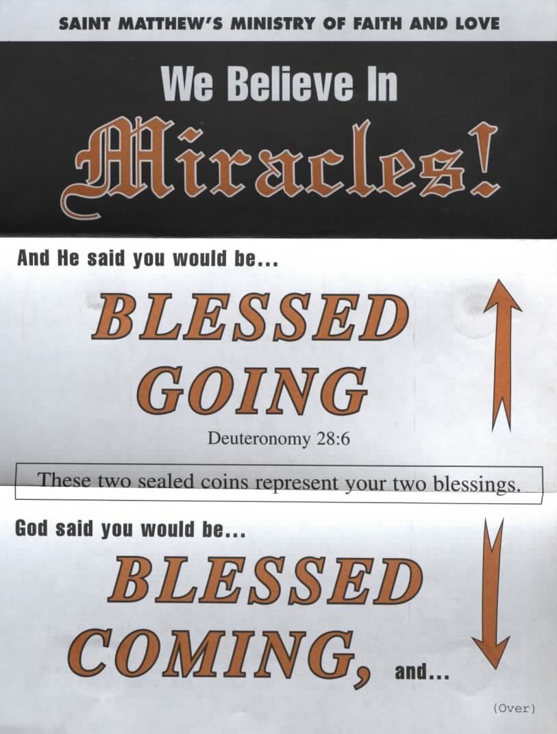 A blessing coming and a blessing going. I believe in miracles. Where you from, you sexy thang?