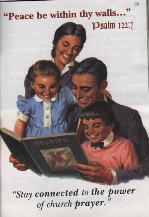 Ah, a family gathered around in prayer. What a joyous sight. Wait. They're not praying. They're reading a book called Stories. I haven't read that one yet. What does this picture have to do with anything? Absolutely nothing. Let's see what's next.