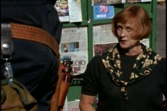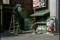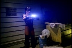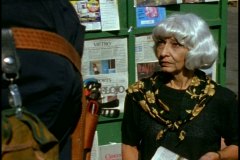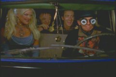| Now it's time for supervillain number three, he's obsessed with time, and he calls himself Clockwise, played by Frank Gorshin (The Riddler from Batman). He's been in jail for many years after being falsely convicted of killing a cop. Somehow, he was able to set up a clock-themed gang of criminals while in the pokey, one of them played by Victoria Silvstedt, former Playmate of the Year. So, he gets out and puts his evil plan into action. He steals some new technology that causes people to age drastically. He also has the ability to stop time for 3 seconds. His evil sinister plot is to make a bunch of people a lot older, and he does just that, but making them stare into clocks. Then there's a crappy special effect, and they get old. It's really neat. |