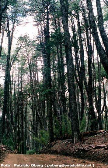 El bosque junto al camino que va desde el lago al sector Captrén. |