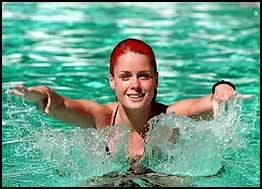 during a concert, she's wearing this ugly bra type thing and she's really sweaty
