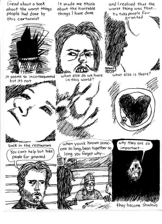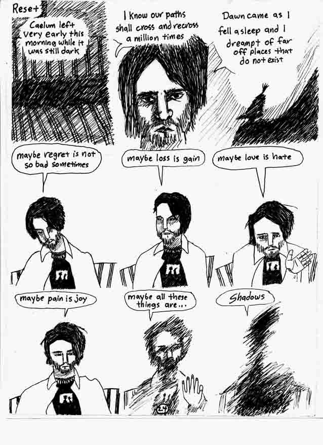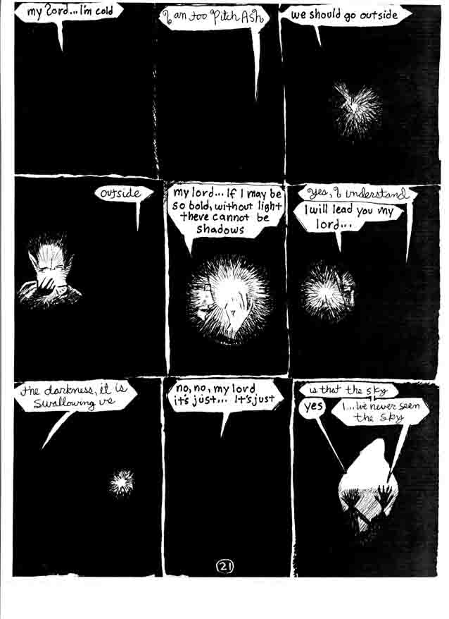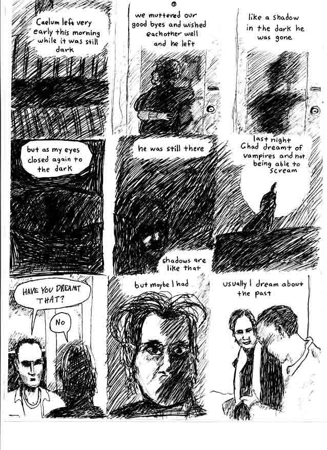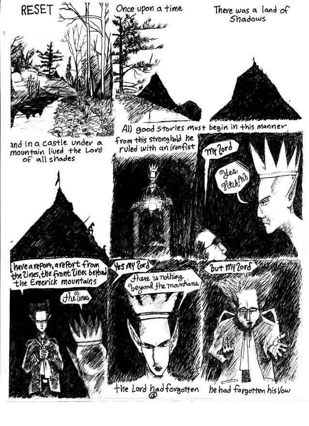 Shadows was inspired by Scott McCloud's 24 hour comic, the first 14 pages were done in 14 consecutive hours however, it took nearly 2 months till the first printing.