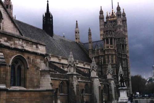 The origins of Parliament go all the way back to the medieval Curia Regis, or Great Council, a body of noblemen and ecclesiastical advisors to the King that evolved into the House of Lords. Quasi-legislative, it was primarily a judicial and executive body. The Model Parliament of 1295 encompassed a mixture of clergy, lords and elected officials. Representatives of the Knights and Burgesses were also assembled to approve royal to the monarchy. They eventually developed into the Houses of Commons and Lords. The House of Lords dominated until Henry VIII's Reformation Parliament act, which put an end to the Church's domination of Parliament and shifted the balance of power to the Commons. A Catholic conspiracy to blow up Parliament on November 5, 1605, failed and ended with the execution of Guy Fawkes in Old Palace Yard. During the English Civil War (1642-48) and its aftermath, Parliament gained legislative supremacy over taxation and expenditures. Parliamentary sovereignty was permanently affirmed by the Glorious Revolution of 1688. The Palace of Westminster was destroyed nearly completely by a major fire in 1834. The King offered Buckingham Palace as an alternative to rebuilding, but his offer was declined by Parliament. Sir Charles Barry and A. W. Pugin began construction of a new government complex and created a masterpiece in the Victorian Gothic style which stands today. The Industrial Revolution of the early 19th century led to the demands of the new classes for representation and passage of reform bills that greatly extended masuffrage. Universal male and female suffrage was granted in the early 1900's. Modern Parliament consists of three governing bodies, the Monarch (who is basically just a ceremonial figurehead,) the House of Lords and the House of Commons. The House of Lords is made up of hereditary nobles and Anglican prelates. It has wielded negligible power since 1911. The House of Commons is an elected body consisting of 651 members. It is presided over by a non-partisan speaker elected by the Commons. In addition, a Prime Minister (also elected by Commons,) who is the executive head of the government, must be a member of the Commons by modern tradition. The Prime Minister's Cabinet, however, can be selected from either House. Thus, the Executive Branch is essentially a committee of the Legislature. Elections are required to be conducted every 5 years, but the Prime Minister can call for them to be held as frequently as every year. If the party in power fails to obtain a parliamentary majority on an important issue, it must call a general election. The major parties in Parliament are the Conservative, Labour and the Coalition of the Social Democrats and Liberals. ![]() The western facade of the New Palace of Westminster Links to my other London Attractions pages H.M. Tower of London Tower Bridge Experience Windsor Castle Buckingham Palace Hampton Court Palace Kensington Palace St. James' Palace Trafalgar Square & Admiralty Arch Westminster Abbey St. Margaret's Church The Official Royal Family Website Didn't find what you needed? Click Here. Home