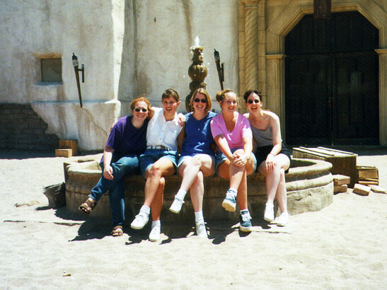 Here's a close-up of 5 of us sitting on the fountain. That cool water felt really good! :)