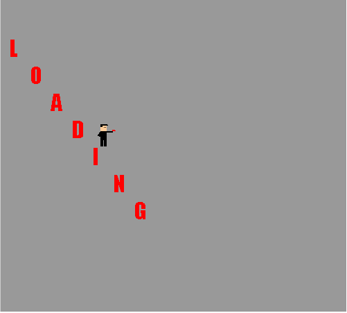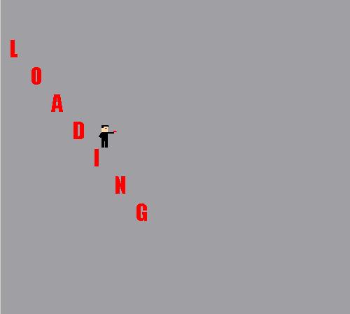 MiniDude being attacked by a snapping turtle while shooting his machine gun.