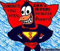 WOO! TWO awards! This one given to me by ZOASam the penguin crazed, dood. Go to HIS site HERE