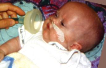 Får extra hjälp i form av en tratt med flödande syrgas.