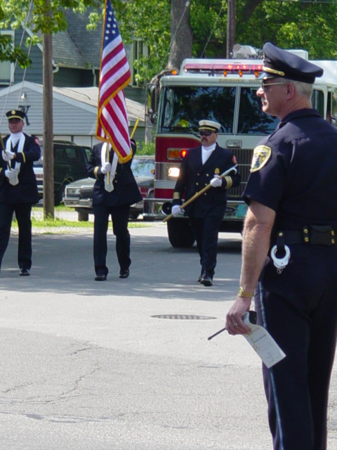 4parade_008.jpg "Capt. P.Duda in foreground with the Chesterton Fire Department color guard in the background"