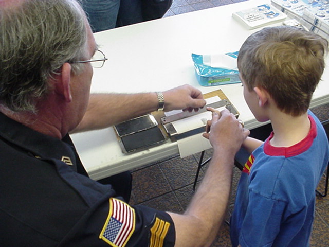 bike_rodeo2.jpg "Sgt. Morgan and Sgt. Duda fingerprinting kids"