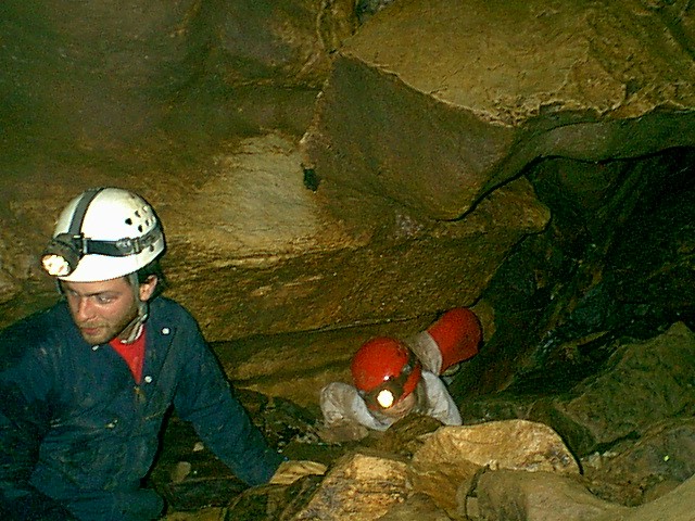 Chris helping Lindsey through a tight (not for her!) passage
