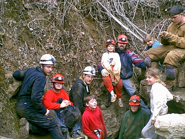 Chris, Kevin, Brent, Traves, Amber, Janelle, Lindsey, John, Alyce, and some other guy at entrance to Trap Door