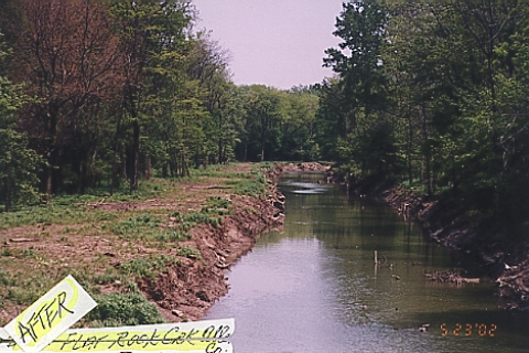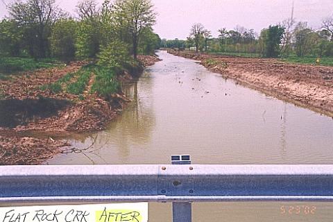 Why is Cedar Creek Wildlife Project fighting so hard to keep the DeKalb County Surveyor from invading lower Cedar Creek with heavy equipment? A glance at the pictures below gives the answer. They show what the Allen County Surveyor did to picturesque Flat Rock Creek just before it crosses the state line into Ohio. Nobody fought hard to save Flat Rock Creek. We won't let the same thing happen to Cedar Creek without exhausting every lawful means of preventing it.