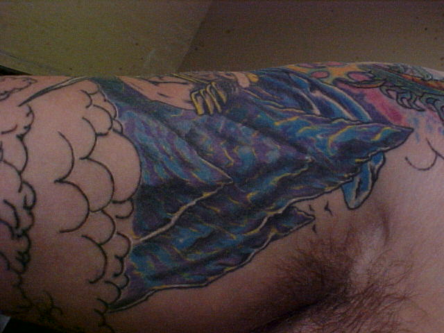 Here is a couple of other ones that I've just got completed. I got both of my armpits done it took 3 hrs to outline and shade both of them in! The design is of course from Paul Booth..