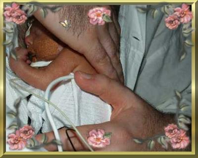 We are very sad to share the news of the death of our sweet and wonderful baby girl Imogen. Imogen was born at 28 weeks gestation in a state of good health, but weighing only 500 grams. To look into her huge, penetrating, intelligent eyes was to fall in love with a unique and fiesty little girl. And all of us who have loved her together have hoped and prayed for her to grow up as our most ardent desire. And she tried as hard as ever anyone could to do just that. Beating bacterial infections, pneumonia and all the hardships of prematurity. But she couldn't grow fast enough and the ventilator that eased the huge burden of breathing with such tiny lungs slowly destroyed those very lungs. Making, in the end, her need for oxygen more than she could manage. The last time we weighed Imogen she was 860 grams. Growth, but not enough new lung tissue to reduce her ventilation. Instead Imogen was caught in a spiral of worsening Chronic Lung Disease as the pressure of the ventilated air scarred her lungs, requiring ever more pressure to inflate her lungs, causing more damage and so on... In her 75 days Imogen had some wonderfull times. Watching all her friends in the New Born Care Centre; listening to her Daddy reading stories; wearing beautiful outfits sent from all over the world by her friends; holding hands, snuggling; sitting outside and listening to the rain; and taking a bubble bath. After some nearly fatal episodes it was clear on Wednesday that she was tiring and only had a short time left. Rather than have her experience the suffering of an acute episode, perhaps without us there, we decided instead to withdraw support on Wednesday afternoon. Karin and I both got to hold Imogen for 2 hours, we then gave her a bath (with bubble jets from the oxygen hose). We then took her off all the machines and Dr John hand ventilated her while we took her into a nice quite room and sat with her on the balcony awhile. Karin held Imogen and we all held hands as her tube was removed. She slipped away fairly quitely apart from some last gasps....
