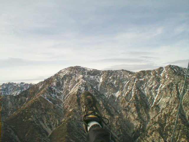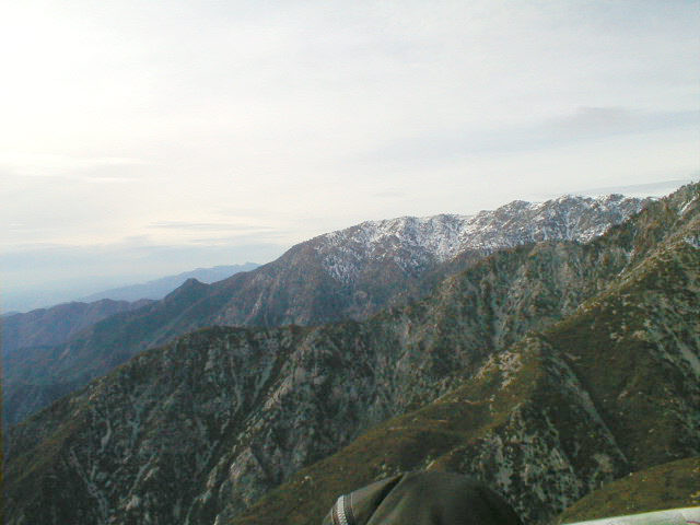 In between L.A's first real rain of the year, Marshall opened a brief window this Saturday which made the waiting worthwhile, pointed the way forward, and hopefully bodes well for the season. I had the opportunity to fly a portion of a route which I had been planning for a long time-[but laziness and circumstance had prevented]. A few people have paraglided the length of the San Gabriels before to Kagel, normally starting from Cucamonga. The slight Southeaster this Saturday made a tough transition from The San Bernardino Range across the Cajon Pass slightly easier. The Cajon can get pretty windy, in fact it normally howls, as skybobo Ben found out in his trip to L.A. ;-] Its also fully wired with the I15 interstate, the railways and enough power lines to light Vegas. Not fun to land in going backwards...