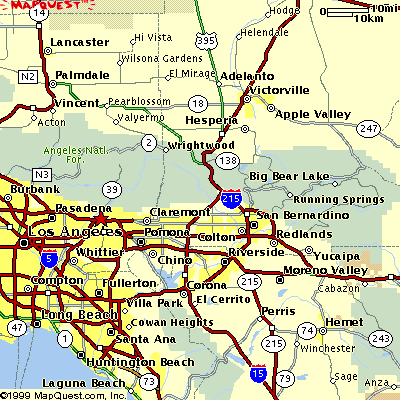 Map with Landing Marked. [Takeoff north of San Bernardino,just to the right of the "215" Crest]