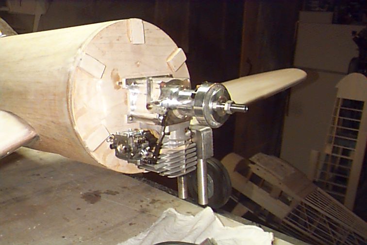 Here are some construction photos of the Northwest Hobby Technologies F4U Corsair. This was supposed to be a quick build giant scale airplane. It has been anything but that. I have ran into lil' building problems all the way along. The biggest problem I have with the kit is there are no instructions included with it. All the building instructions are on a VCR tape. There are also some building tips and hints on NWHT's website. The other problem I have with the kit is that it's not all that scale. Sure, it looks like a Corsair, especially at a 15 foot distance or while it's airborne, but it's missing the counter balances on the tail surfaces, the flaps and the fuse and cockpit area are not really up to snuff. More problems? Yes, the rudder is to be controlled exterior to the plane, the tailwheel assembly has no control linkage to it. With all that said, I think this plane will fly well. It will have fairly light wingloading and it should be pretty sturdy. I never did get this plane airborne. I ended up trading it to a gentleman from South Bend. He flew it right away and often. He said he loved it. NWHT is out of business. Good thing, I'd never recommend one of these kits to anyone.