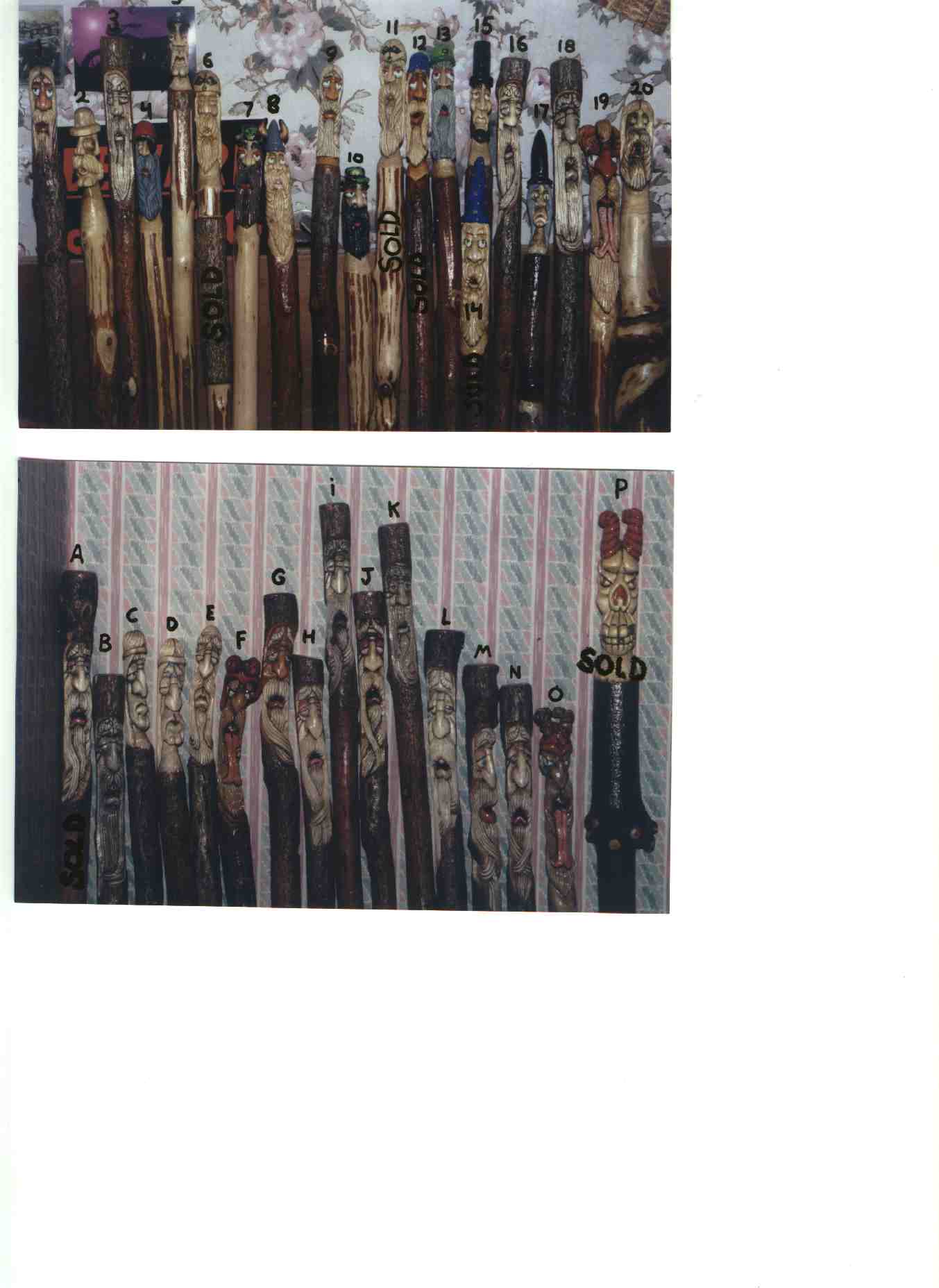 These sticks have been sold: # 1, # 3, # 15, # 18, # 19, # 26, # 31, # 34, # 36, # 38, # 48, C, G, H, K, L, Uncle Sam # 3.