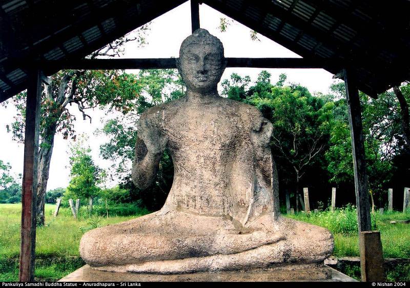 ![]() Asokaramaya (Pankuliya Buddha Statue)Asokaramaya is located in a beautiful surrounding in the village of Pankuliya. This is a fairly unknown site to the average pilgrim but has one of the best carved Buddha statues in the country today. This statute equals the quality of the famous Samadhi Statue and the Tholuvila statue (which is now kept in the Colombo museum). This statue is also known as Pankuliya Buddha statue. But unfortunately this area has been rather neglected recently and not visited by pilgrims. In addition to this very fine statue Asokaramaya is surrounded by now ruined long columned buildings with beautiful guard stones and a pool. This is thought to be a nunnery and the original name of this site is not known. This statue is said to belong to the 9-10th century and is made of dolomite. The eyes are hollow indicating that they have been studded with precious stones in the past. The statue is 6feet 9 inches (2 metres) in heightFebruary 13, 2007protected by a concrete structure with a roof rather destroying the real beauty of the statue. This site can be accessed through the road leading to famous Galpalama. You can ask directions from the villagers once you fall on to the road. The road leading to this temple ends at a paddy field. Form there you have to walk across the paddy field on a foot path to reach this site.