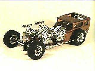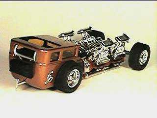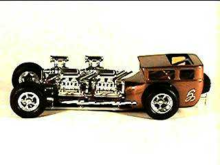 After getting rid of the injector systems, I supercharged all four engines and made new wheels for it. The body was an old AMT chopped "T" that I removed & filled the rear deck, opened up wheelwells and grafted the cowl portion of the Showboat body to.